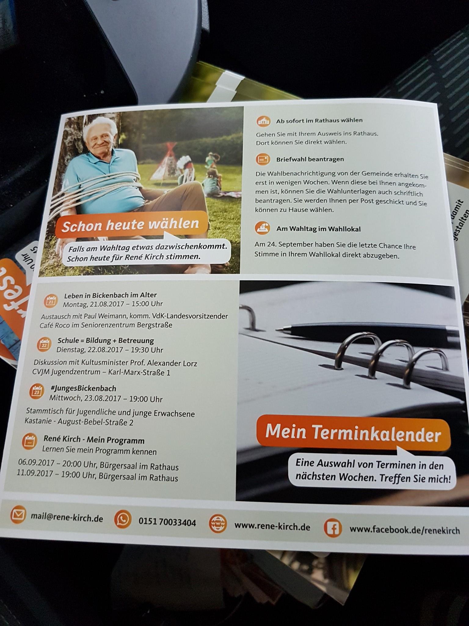 Die Mitgliederversammlung der Bickenbacher CDU den Anfang Mai vom Vorstand nominierten René Kirch einstimmig zu Ihrem Kandidaten für die Bürgermeisterwahl am 24. September 2017 gewählt.